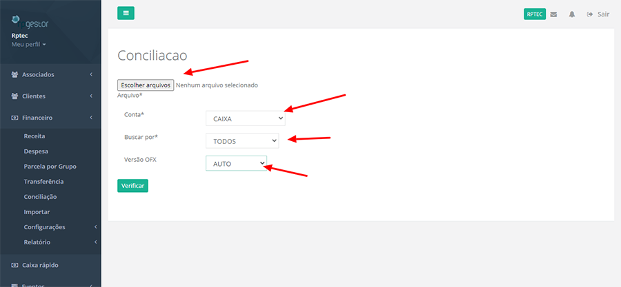 É Possível fazer a conciliação báncaria automática, basta através do seu internet banking pegar o arquivo OFX e no menu conciliação clicar em verificação de arquivo: