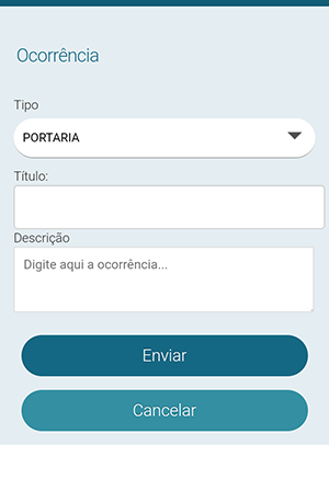Aqui é possível enviar ocorrências para portaria, administradora ou sindico.