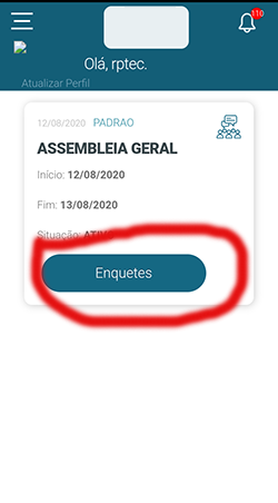 Após isso você será direcionado para a assembleia, para votar clique no botão Enquetes